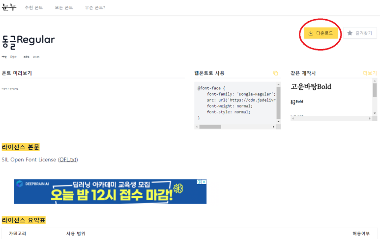 그래서 폰트를 아무거나 막 다운받아 쓰시면 안 되고 무료인지 유료인지 봐야 하며 어디까지 무료로 허용되는지도 잘 알아봐야합니다.