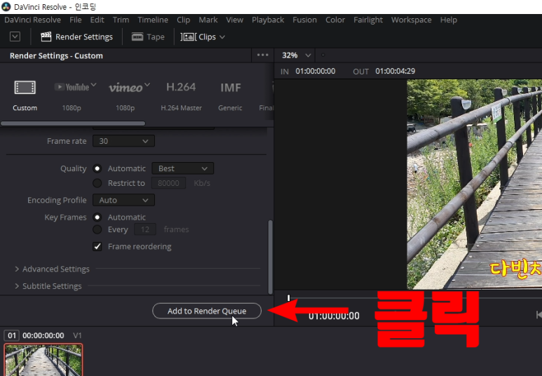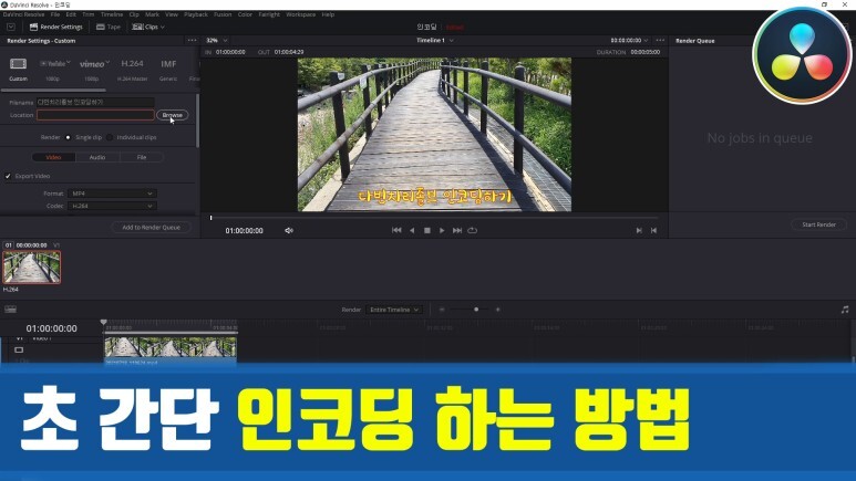 다빈치리졸브로 영상을 편집한 다음 인코딩해서 영상파일을 만드는 방법을 간단히 알려드리겠습니다.