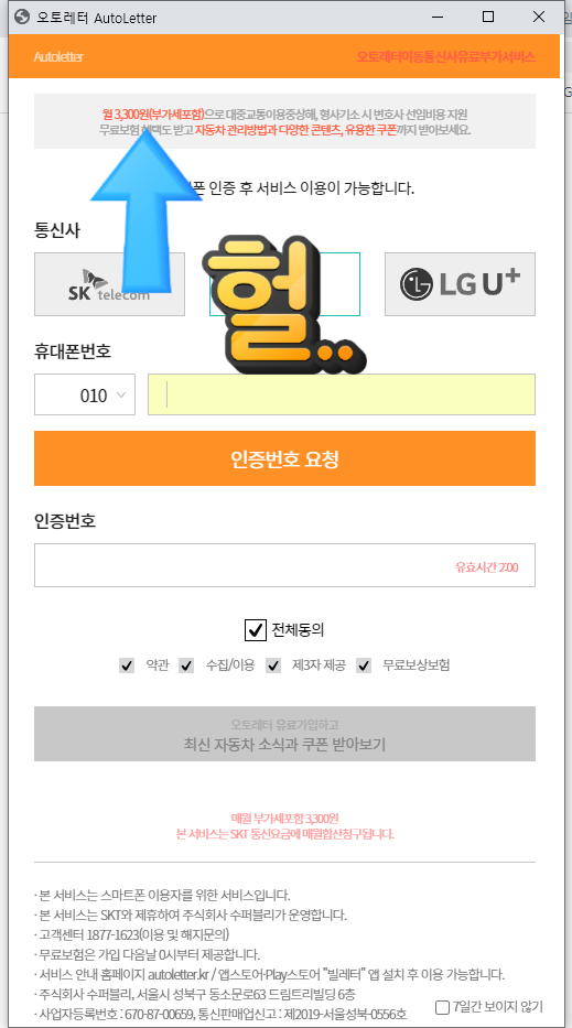 창이 두개 뜨는데 위의 오토레터로 본인인증을 하지마세요! 월3,300원씩 빠져 나갑니다. 실수로 했다면 해제하시면 될꺼예요.(예전에 다른곳에서 당해서 바로 해제했음..)