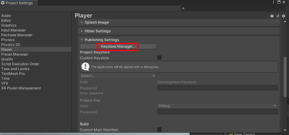 Keystore... -> Create New -> In Dedicatted Location.. 클릭