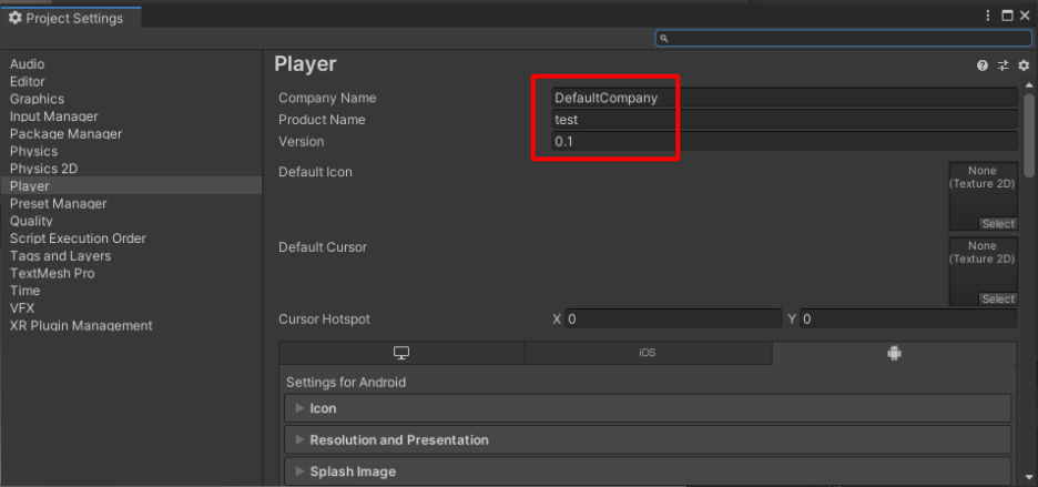 Default Orientation을 보면 여러가지 선택 할 수 있는데 이건 게임을 실행시에 스마트폰의 방향을 설정할 수 있는 옵션입니다.