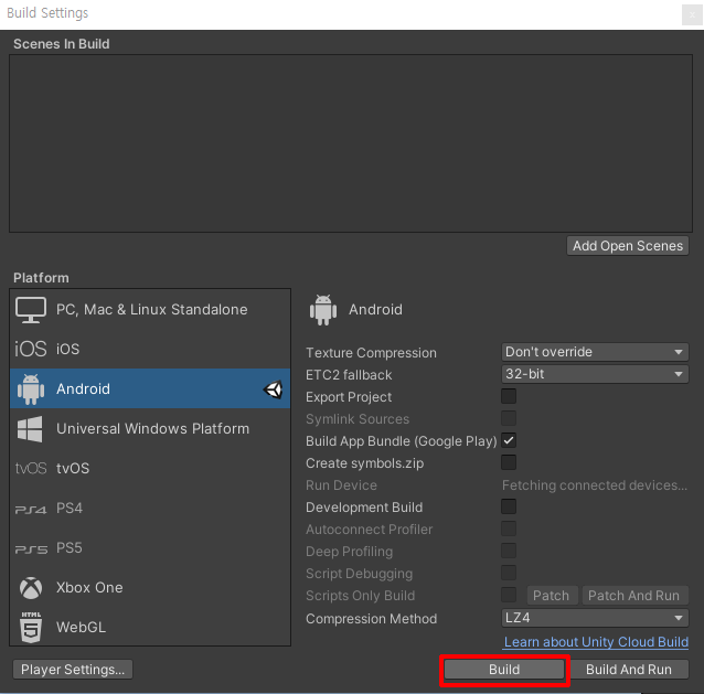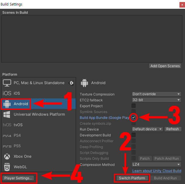 1. Platform을 Android로 바꿔주고