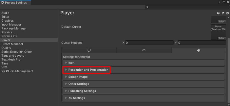 다음으로 Resolution and Presentation을 클릭해주세요.