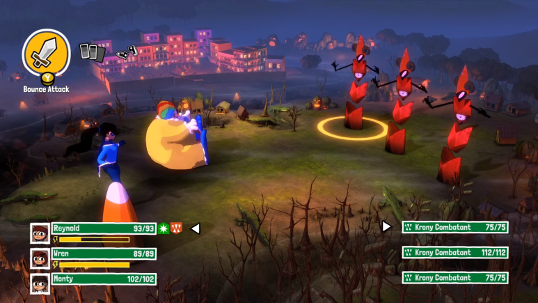 사무라이 조류아저씨가 친절하게 전투방법을 알려줍니다. 전투는 일본식 RPG턴제인데 타이밍에 맞게 공격하거나 방어하면 좀 더 높은 데미지 및 방어를 할 수 있습니다.