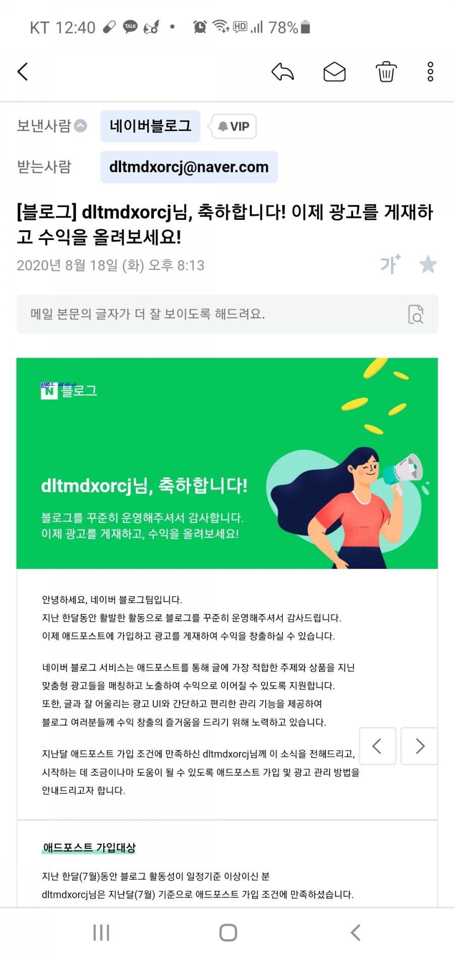 이번에 드디어 네이버 애드포스트 광고 승인이 떨어졌습니다.