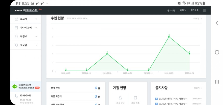 그럼 이제 몇일 안되었지만 제 애드포스트 광고수익을 공개하겠습니다~!두둥~!