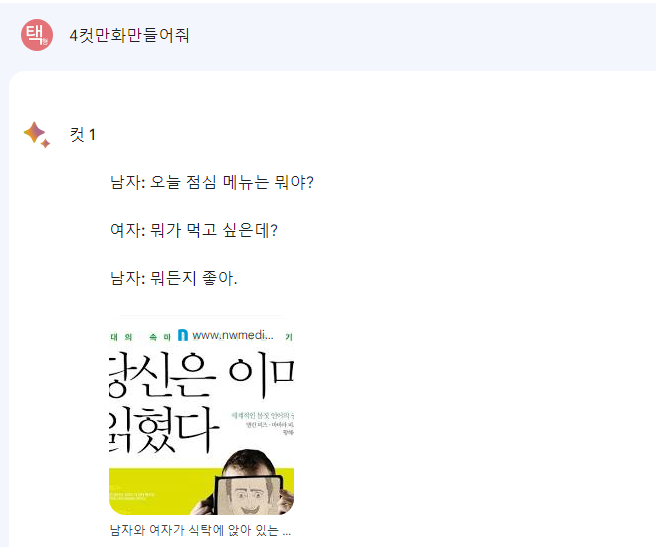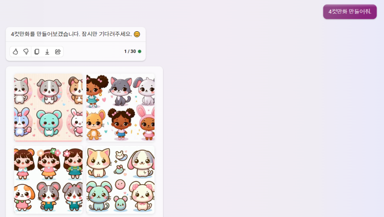 처음엔 간단하게 4컷만화를 만들어 달라고 해 보았습니다.