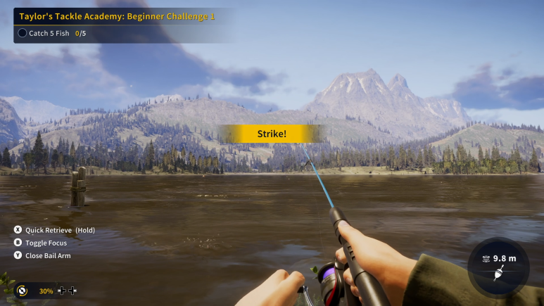물고기 입질은 빨리 오는 편입니다. 개인적으로 입질이 빨리 오는게 지루하지 않고 좋더군요. 다만 아쉬은게 입질이 오고 화면에 Stike라 뜰 때 낚시줄을 땡기면 되는데, 자막말고 플레이어가 직접 찌를 보고 판단 하게 했으면 더 물고기 낚는 재미가 있었을 거 같습니다.