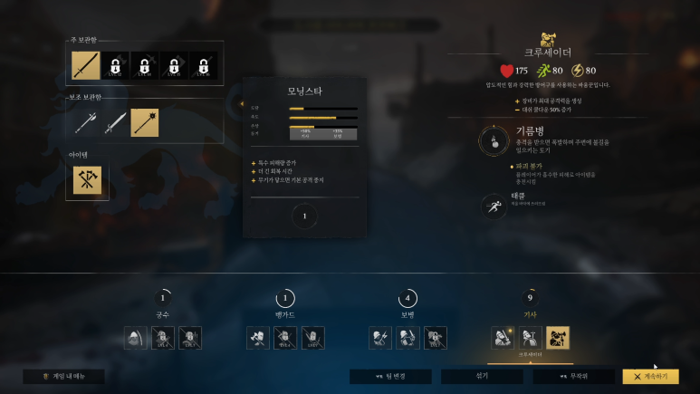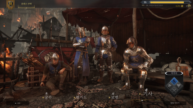 직업은 크게 궁수, 뱅가드, 보병, 기사로 나눠 지고 그안에서 좀 더 세분화 되어 있습니다. 중세 갑옷과 무기들이 중세에 맞게 잘 표현되어 있더군요.