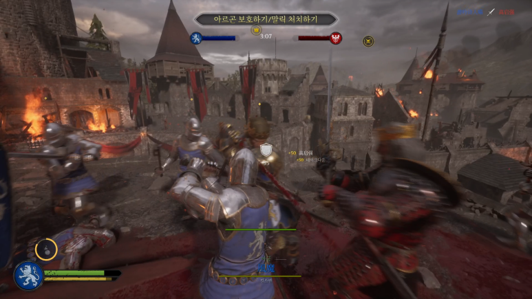 플레이하는데 진짜 중세시대에서 전쟁을 하는듯한 기분이 들더군요. 적군과 아군의 대규모 전투가 리얼하게 표현되어있습니다.(전투 중 팔,다리가 잘리기도 하더군요;)