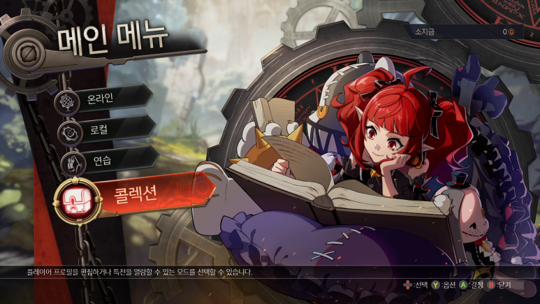 메인 메뉴로는 온라인, 로컬, 연습, 콜렉션이 있습니다.